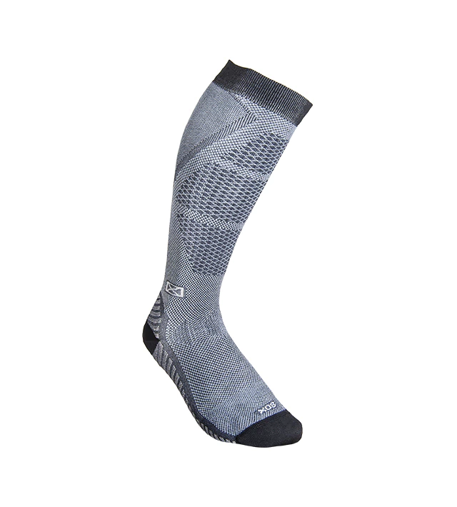 Medias de compresión graduada pensadas para el deportista. Desarrolladas para contribuir a la re-circulación del sistema sanguíneo y a la contención de los músculos. Colaboran en la prevención de la fascitis plantar por la compresión transmetatarsal. Caña con punto de tejido especialmente diseñado para lograr una mejor ventilación de la pierna, caña y pie anatómicos, sectores específicos de ventilación para evitar el calentamiento del pie, puntos de apoyo sectorizados con mayor densidad para absorber impactos. Puño doble. Talón y puntera reforzados, costura de puntera extra plana. Secado rápido gracias a su composición.