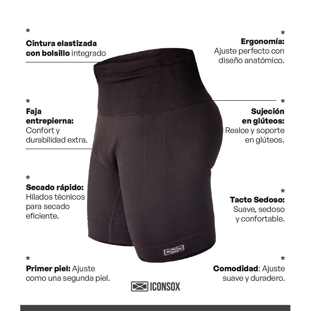 Puntos de sujeción en glúteos: Puntos de sujeción estratégicos en glúteos para mayor soporte y realce.