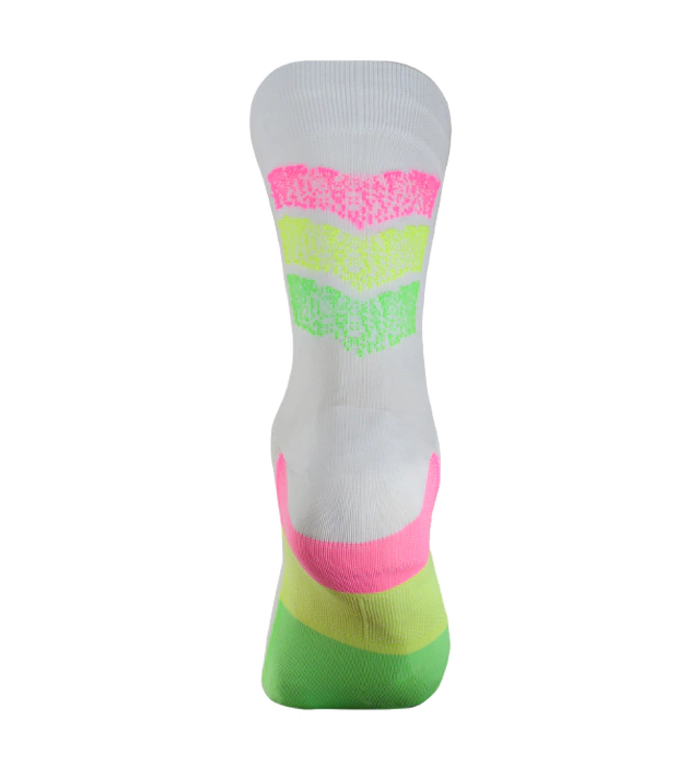 Puño doble elastizado, tejido liso, banda elástica en el pie para mejor sujeción, zona de ventilación en caña y pie para mantenerlo seco. Costura de puntera extra plana, talón y puntera reforzados. Ajuste y calce perfectos gracias al agregado de spandex. Secado rápido gracias a su composición.