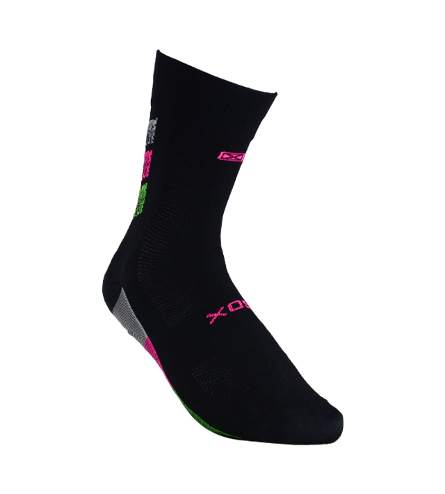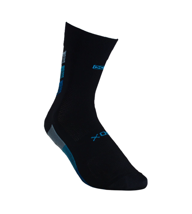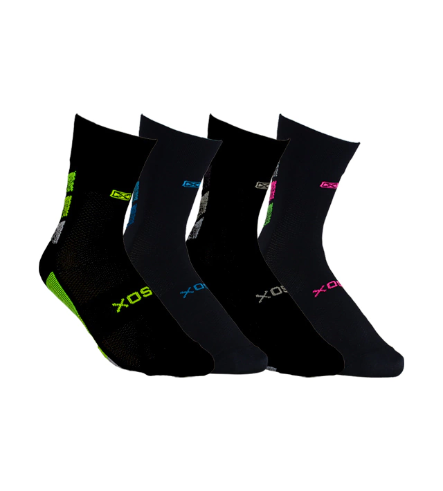 Puño doble elastizado, tejido liso, banda elástica en el pie para mejor sujeción, zona de ventilación en caña y pie para mantenerlo seco. Costura de puntera extra plana talón y puntera reforzados, ajuste y calce perfectos gracias al agregado de spandex. Secado rápido gracias a su composición.