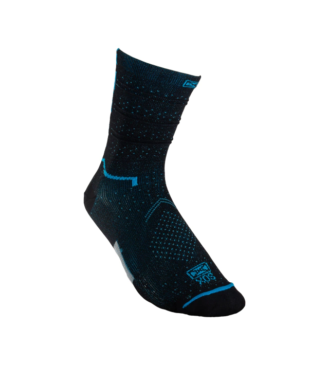 Puño doble elastizado, caña y pie anatómicos. Puntos estratégicos de amortiguación en caña y pie para disminuir los impactos. Costura de puntera extra plana, talón y puntera reforzados. Ajuste y calce perfectos gracias al agregado de spandex. Secado rápido gracias a su composición.