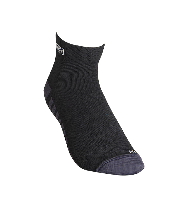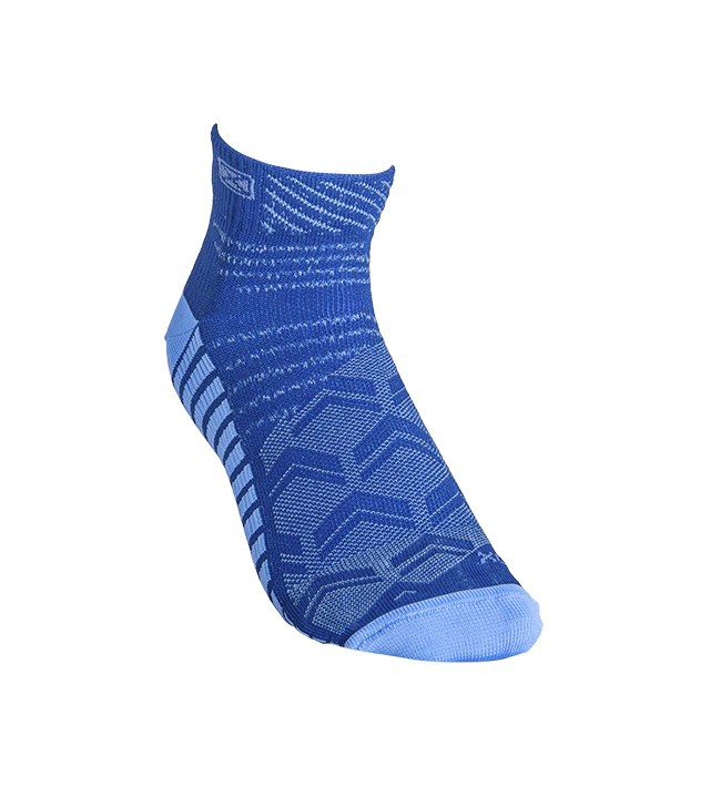 Puño doble, caña corta, caña y pie elastizados para lograr un calce perfecto. Diseño anatómico para pie izquierdo y derecho. Sectores específicos de ventilación para evitar el calentamiento del pie. Talón y puntera reforzados, costura de puntera extra plana. Secado rápido gracias a su composición.