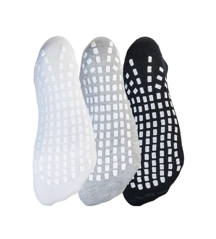 Puño doble elastizado, pie liso con antideslizante ideal para la practica de pilates, yoga y natacion. Evita resbalones y es ideal para usar sin zapatillas. Caña corta, remallado plano, talon y puntera reforzados. Ajuste y calce perfectos gracias al agregado de spandex.