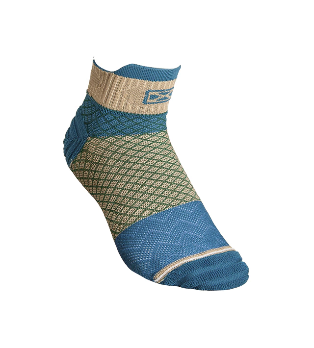 Puño doble elastizado, caña y pie anatómicos. Puntos estratégicos de amortiguación en caña y pie para disminuir los impactos. Costura de puntera extra plana, talón y puntera reforzados. Diseño reversible, lo cual permite utilizarlas de ambos lados manteniendo siempre sus beneficios. Secado rápido gracias a su composición.