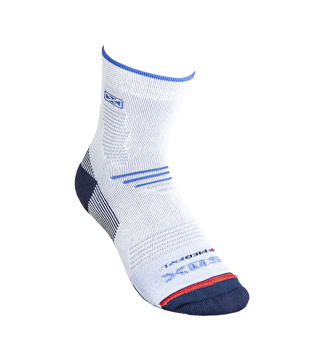 Medias de compresión pensadas para el deportista. Desarrollada para contribuir a la re-circulación del sistema sanguíneo y a la contención de los músculos. Tejida con hilado MEDFYL que posee propiedades antibacterianas y antivirales que combaten el mal olor. Colaboran en la prevención de la fascitis plantar por la compresión transmetatarsal. Puño doble elastizado, caña y pie anatómicos, sectores específicos de ventilación para evitar el calentamiento del pie. Puntos de apoyo sectorizados con mayor densidad para absorber impactos. Talón y puntera reforzados, costura de puntera extra plana. Secado rápido gracias a su composición.